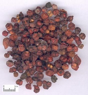 五味子为木兰科植物五味子Schisandra chinensis(TurcZ)Bail的干燥成熟果实。其有效成分含五味子素 (schizandrin)、去氧五味子素(de-oxyschizandrin)、新一味子素(neoschizandrin)、五味子醇(schizan-drol)、五味子酯(schisantherin,gomisin)、A、B、C、D、E、F、G、H、J、K1、K2、K3、L1、L2、M1、M2、N2,O,R等。