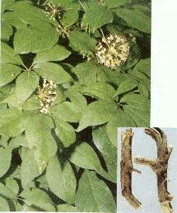 为五加科植物刺五加 Acanthopanax senticosus(Rupr.etMaxim.)Harms 的根及根茎,生于山地林下及林缘,主产东北。其有效成分含刺五加甙(eleutherosideA,B,c,D,E,F,G)和多糖等。